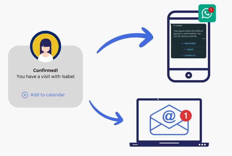 Unlimited appointments and reminders (WhatsApp, SMS, Email)